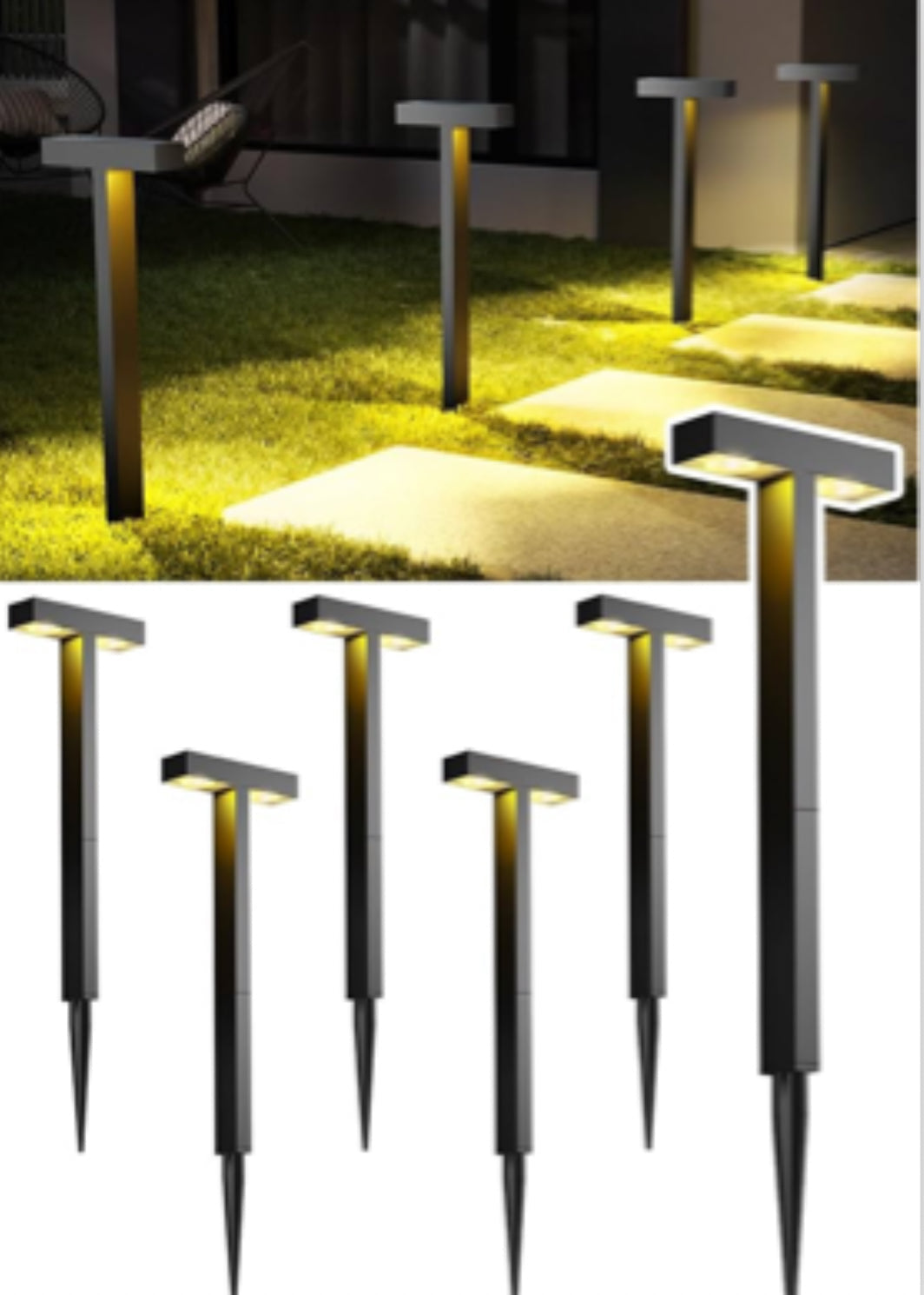 - Contemporary Solar Illuminations - The Lighteme solar garden lights showcase a strikingly chic and uncluttered design. Shaped like a "T", it has lights on both sides pointing downward, producing vivid and captivating light designs on your garden path.
