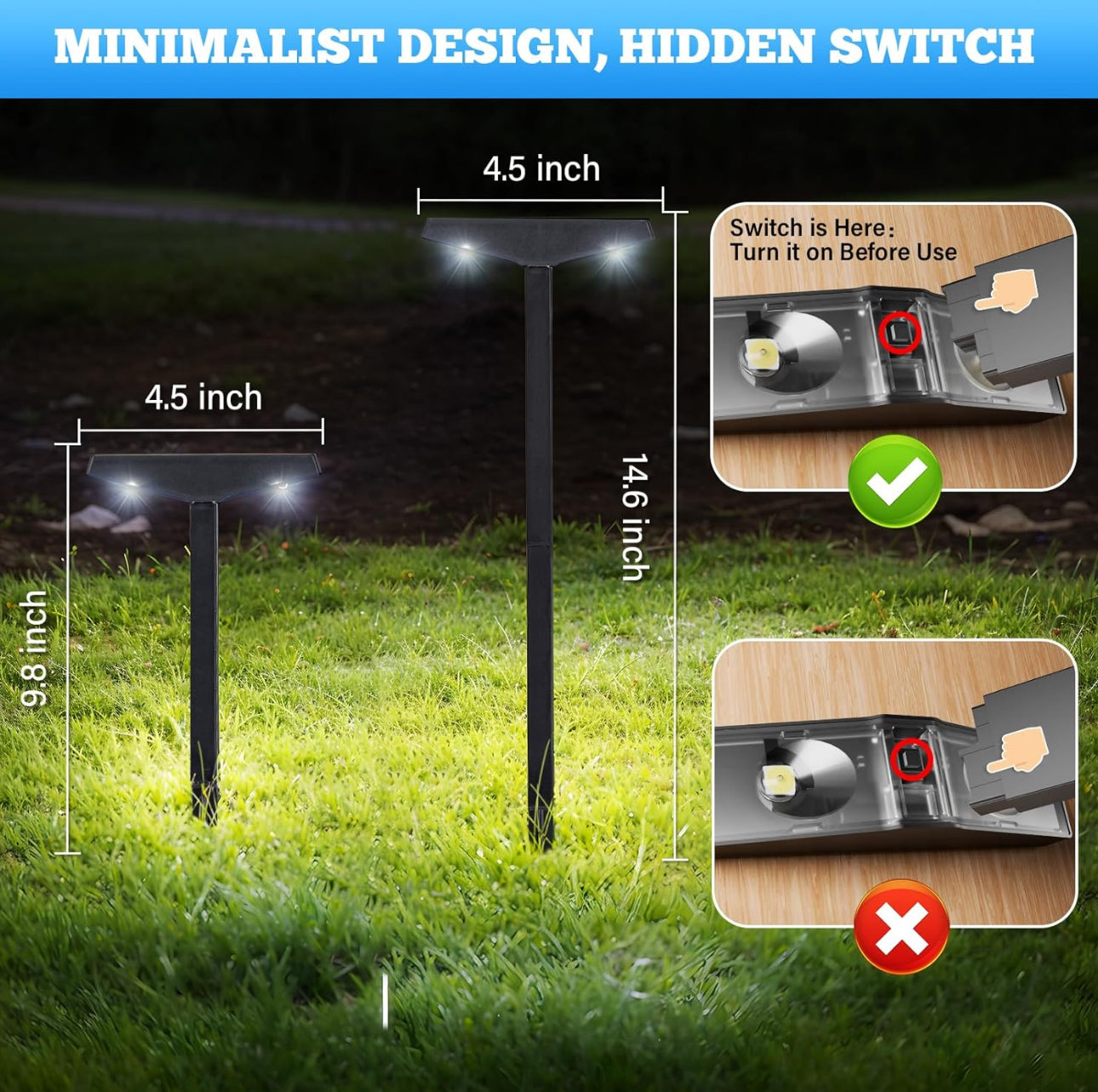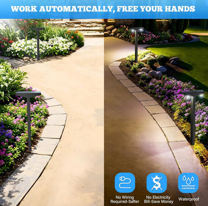 - Automatic Switch Function - Ideal for placement on walkways, driveways, paths, front yards, gardens, and backyards, these outdoor solar-powered lights are top-notch waterproof pathway lighting solutions. The Lighteme solar lights efficiently brighten the vicinity and set a warm ambiance.
