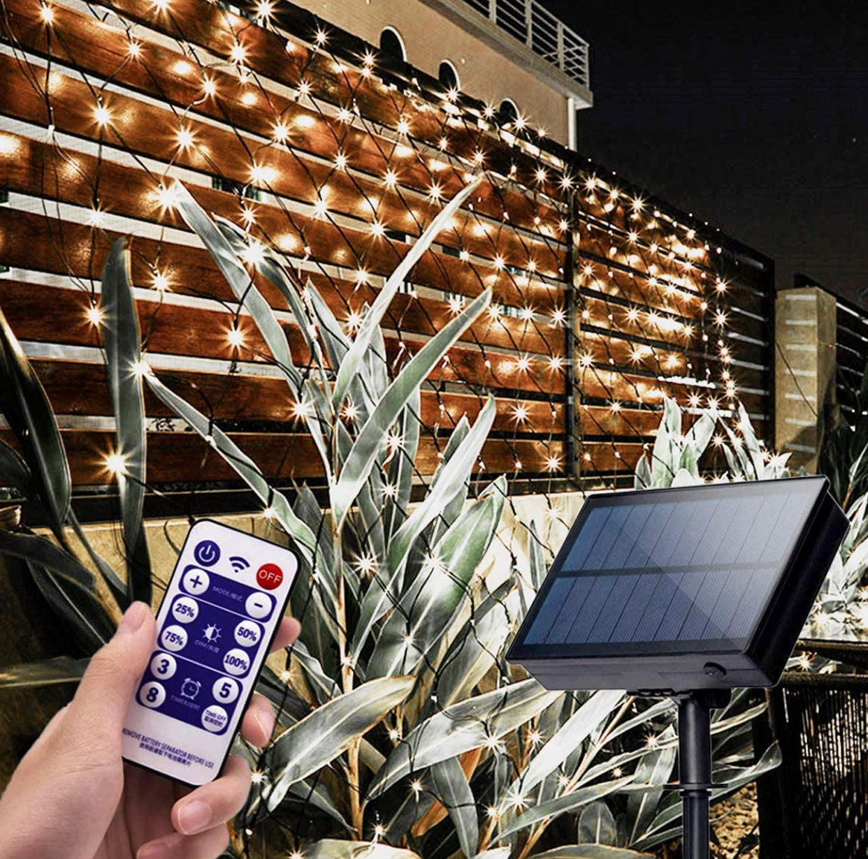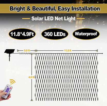 Lighteme Solar Net Mesh Lights 360 LED with Remote, 11.8Ft x 4.9Ft Fence String Light