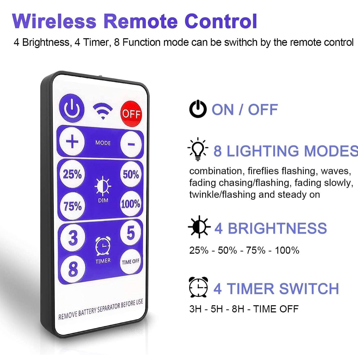 8 Dynamic Effects: Combination/Waves/Sequential/Slow Glow/Chase/Fade/Twinkle/Steady