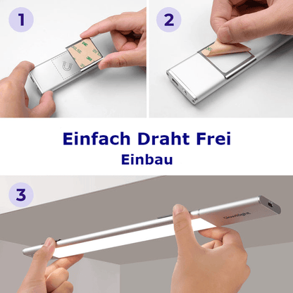 The installation of the light is super easy. No wiring and no drilling required! With the built-in magnets and self-adhesive 3M metal plates, you can attach the light practically anywhere.