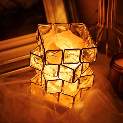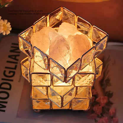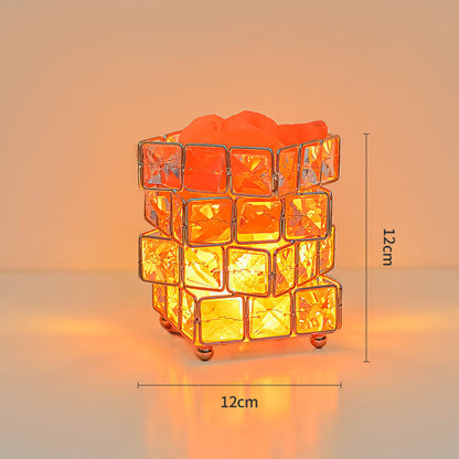 - Transparent Acrylic Panels: Clear panels on each face of the cube showcase the salt crystals, allowing light to penetrate and create a soft, diffused glow through the mineral’s natural texture.