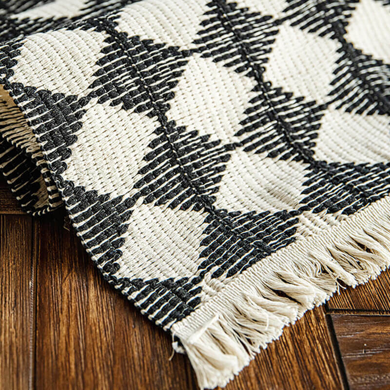 - Playful Tassel Accents: The playful tassel accents on the table runner add a touch of charm and movement. The tassels give the runner a lively and dynamic look, breaking up the simplicity of the black and white color scheme. They also provide a tactile element, making the runner more engaging. The tassels can sway gently, adding a subtle decorative touch to the table setting. They contribute to the overall aesthetic, making the table runner a delightful addition to any dining table.