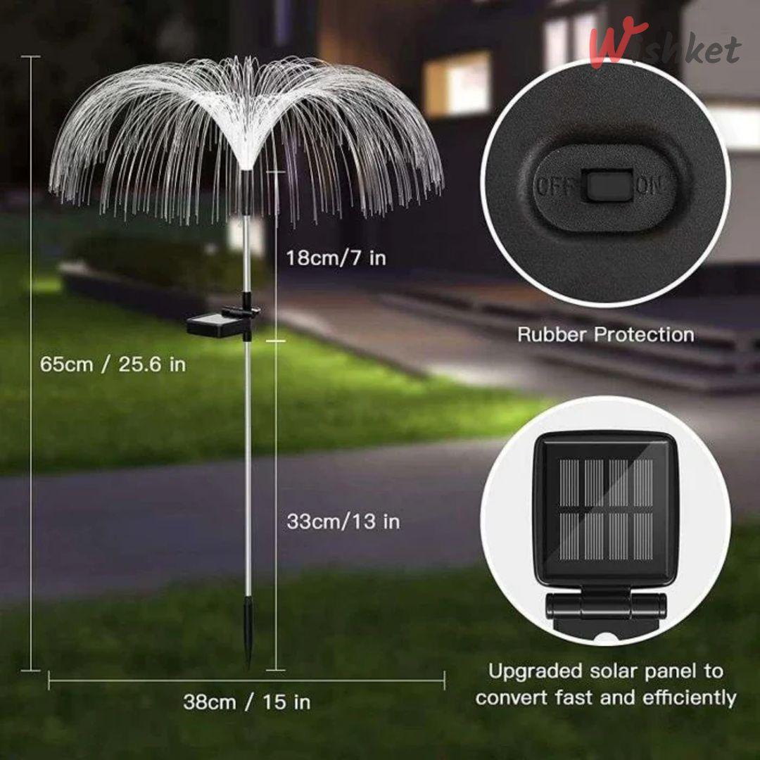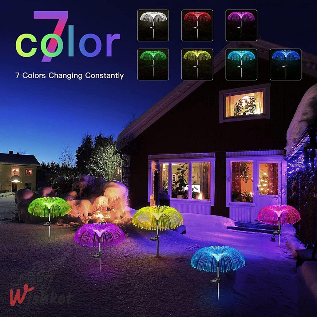 Solar Jellyfish Lights are a new and innovative way to decorate your garden, patio, or other outdoor areas with colorful and eco-friendly lights. These lights are shaped like jellyfish and feature 7 color-changing modes that create a stunning visual effect at night.